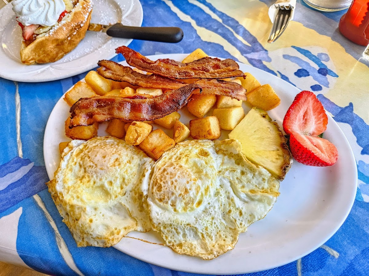 One of the highlights is the classic breakfast platter — perfectly cooked eggs, crispy bacon or sausage, golden hash browns, and toast done just the way you like it. The eggs are fluffy, the meats savory, and the potatoes crisp yet tender inside. It’s simple but incredibly satisfying.